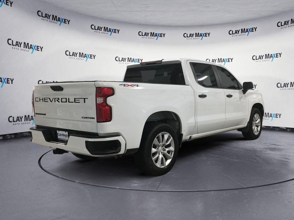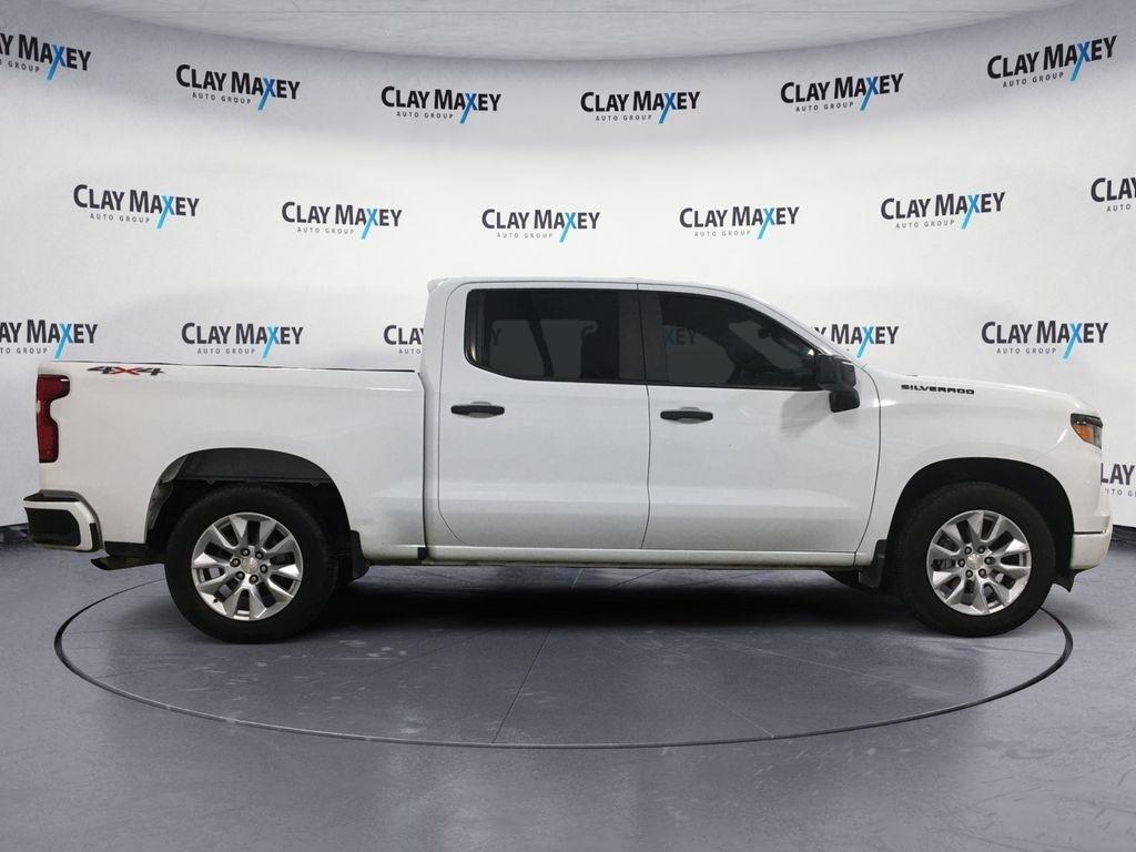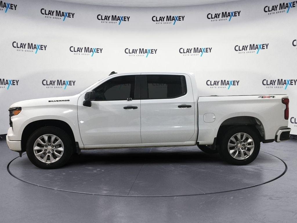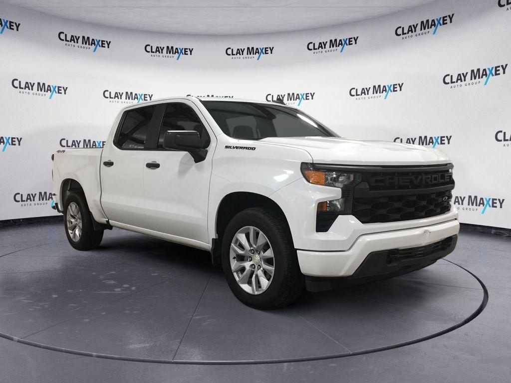 2022 Chevrolet Silverado 1500 Custom This 2022 Chevrolet Silverado 1500 Custom in Summit White features. Silverado 1500 Custom, 4D Crew Cab, 2.7L Turbo, 8-Speed Automatic, 4WD, Summit White, Jet Black Cloth, 10-Way Power Driver Seat w/Lumbar, 120-Volt Bed Mounted Power Outlet, AM/FM radio: SiriusXM, Auto High-beam Headlights, Bluetooth® For Phone, Chevytec Spray-On Black Bedliner, Custom Convenience Package, Dual Rear USB Ports (Charge Only), Following Distance Indicator, Forward Collision Alert, Front Pedestrian Braking, Fully automatic headlights, HD Rear Vision Camera, High Capacity Suspension Package, Hitch Guidance, Lane Keep Assist w/Lane Departure Warning, LED Cargo Area Lighting, Manual Tilt Wheel Steering Column, Panic alarm, Power driver seat, Premium audio system: Chevrolet Infotainment 3, Rear Wheelhouse Liners, Remote Keyless Entry, Remote keyless entry, Remote Vehicle Starter System, Security system, Split folding rear seat, Tilt steering wheel, Trailering Package, Wheels: 20" x 9" Bright Silver Painted Aluminum.