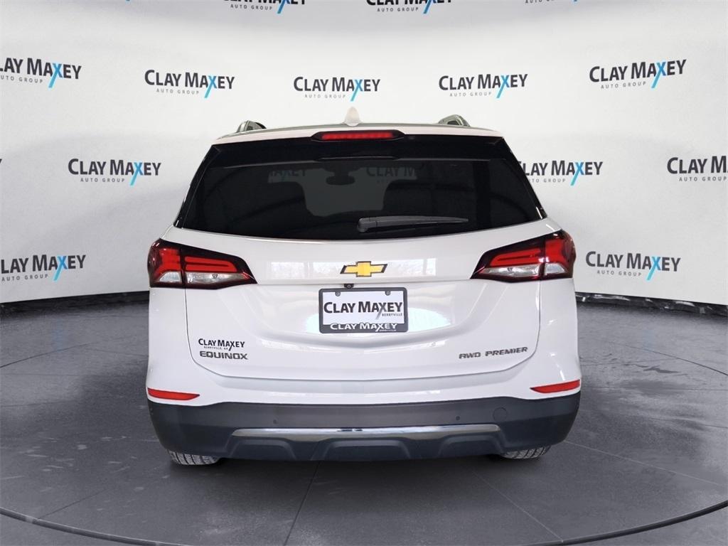2022 Chevrolet Equinox Premier This 2022 Chevrolet Equinox Premier in Summit White features. AWD, Auto High-beam Headlights, Brake assist, Electronic Stability Control, Emergency communication system: OnStar and Chevrolet connected services capable, Fully automatic headlights, Heated Driver & Front Passenger Seats, Heated steering wheel, Outside temperature display, Overhead console, Panic alarm, Perforated Leather-Appointed Seat Trim, Power Liftgate, Preferred Equipment Group 1LZ, Security system, Split folding rear seat, Tachometer, Telescoping steering wheel, Tilt steering wheel, Wireless Apple CarPlay/Wireless Android Auto. Odometer is 15081 miles below market average! 25/30 City/Highway MPG